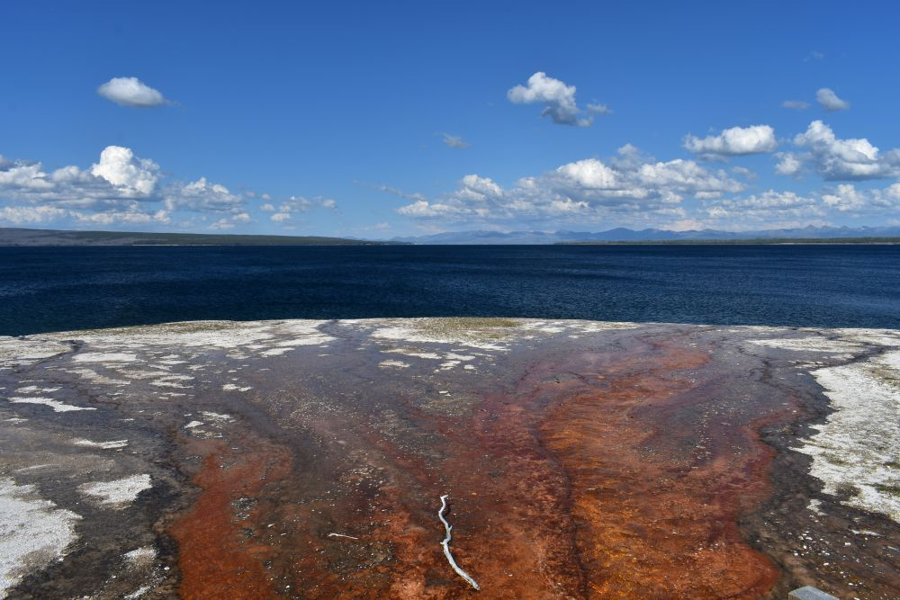 Den Abschluss unseres zweiten Yellowstone-Tages bildete das Geysirfeld West Thumb, direkt am Westufer des Yellowstone Lakes. Auf den Fotos ist unter anderem der sog. Fishing Cone zu sehen. Ein ehemaliger Geysir direkt im See. Früher wurden Geschichten von einem See erzählt, an dem es möglich war einen gefangenen Fisch direkt am Haken in einer heißen Quelle zu kochen. So entstand der Name Fishing Cone 😉