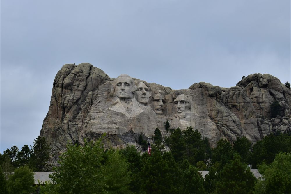 Etwas unterhalb von Rapid City liegt das Mount Rushmore Memorial. Natürlich konnten wir das nicht links liegen lassen und fuhren den kleinen Berg hinauf um einen Blick auf die Steinköpfe zu bekommen. Man kann sich hier auch wieder eine Eintrittskarte kaufen, um noch näher heranzukommen, doch alleine die Parkgebühren von 10$ war uns das Ganze nicht wert. Beim Vorbeifahren sieht man eigentlich auch alles.