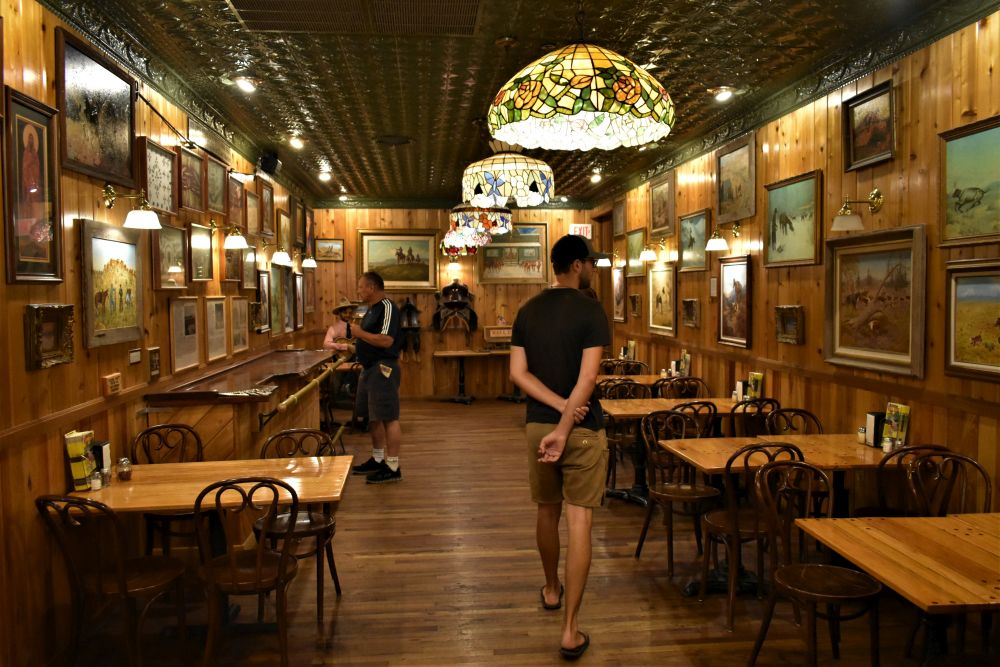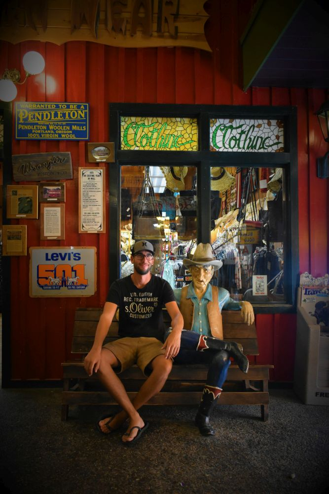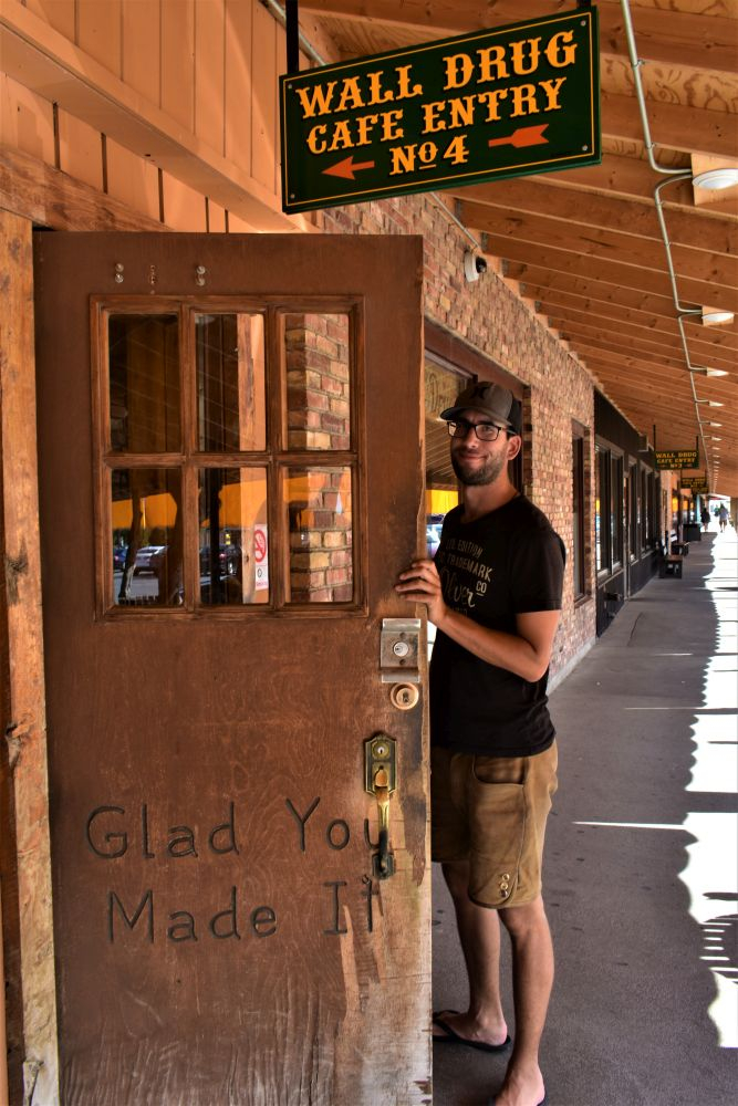 Weiter auf der Interstate 90 kündigte sich schon etliche Meilen vorher der nächste Touristenmagnet durch große Reklamen am Straßenrand an. Wall Drug – Einkaufszentrum, Drug Store und Souvenirshop. Dazu einige Restaurants und Bars im Cowboy-Style. Ein MUSS für alle Durchreisenden und Kaffee-Trinker. Der kostet hier nämlich nur 5 Cent 😉