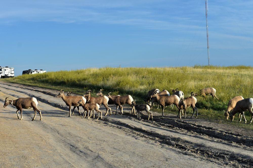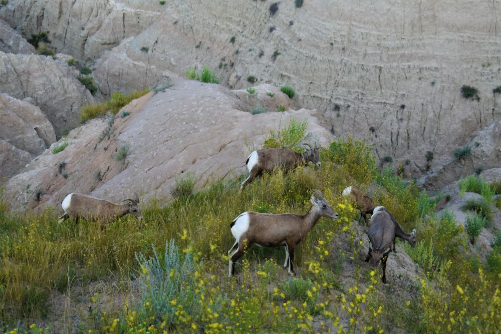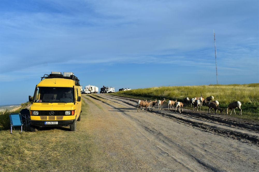 Wir parkten unseren Erwin an einer steilen Felskante neben anderen Overlandern. Von dort hatten wir einen herrlichen Ausblick auf die Felsen und bekamen sogar noch Besuch von einer Bighorn Sheep Herde.