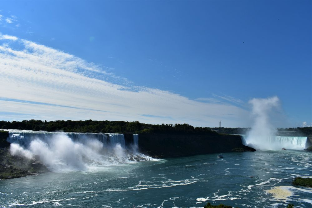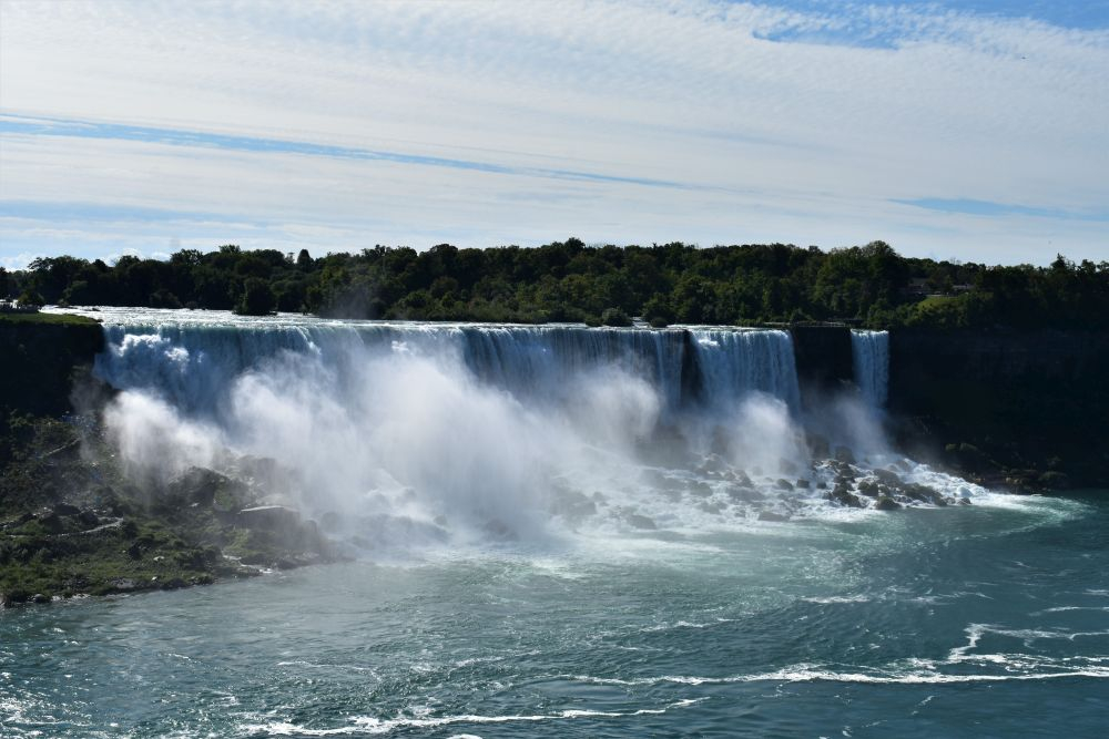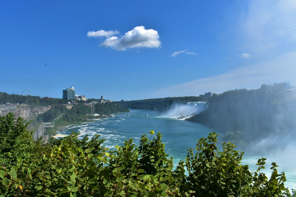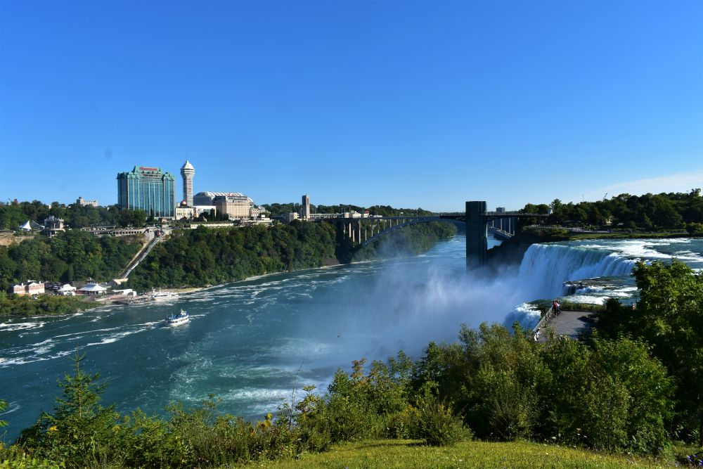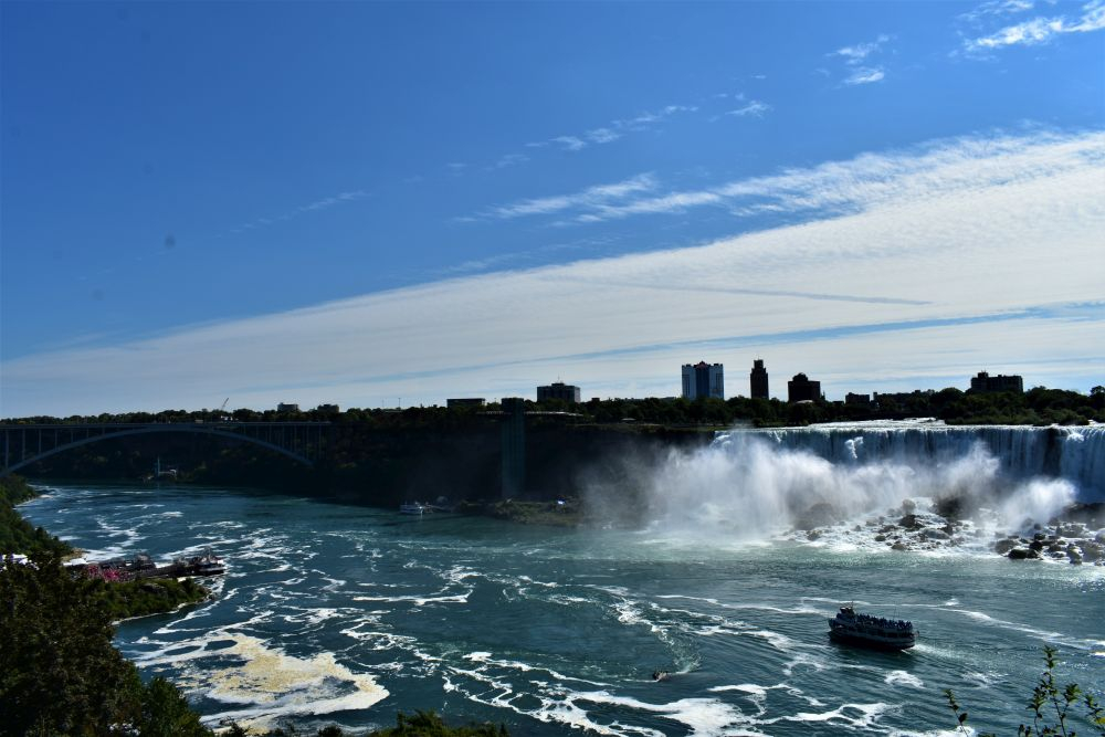 Die Wasserfälle waren durchaus beeindruckend, wir hatten allerdings eine komplett andere Vorstellung davon. In unseren Köpfen waren die Niagarafälle immer irgendwo in der Natur, ohne viel Zivilisation drum herum. Doch wir waren dann sehr überrascht als wir dutzende Hotels und Hochhäuser um die Flüsse herum sahen. Es ist schon alles sehr zubetoniert, von unberührter Natur ist hier definitiv keine Spur mehr. Trotzdem waren die Wasserfälle natürlich gigantisch anzusehen, eine Dusche gab es kostenlos mit dazu 😉