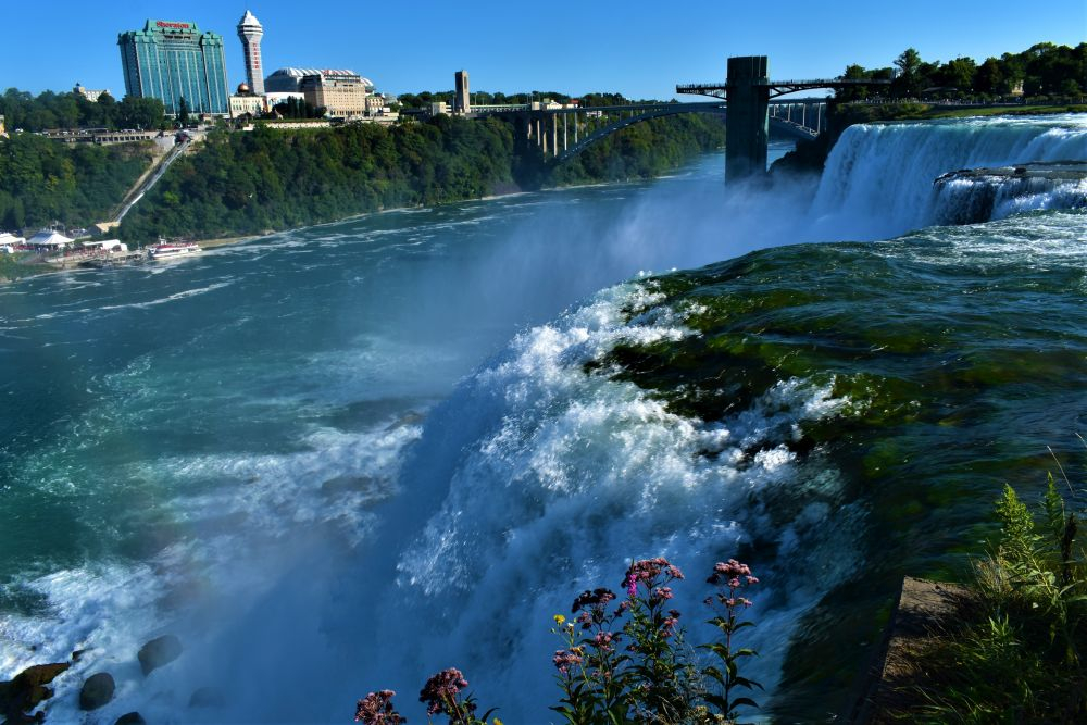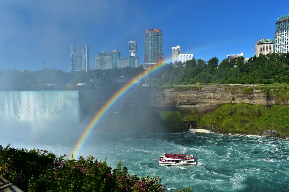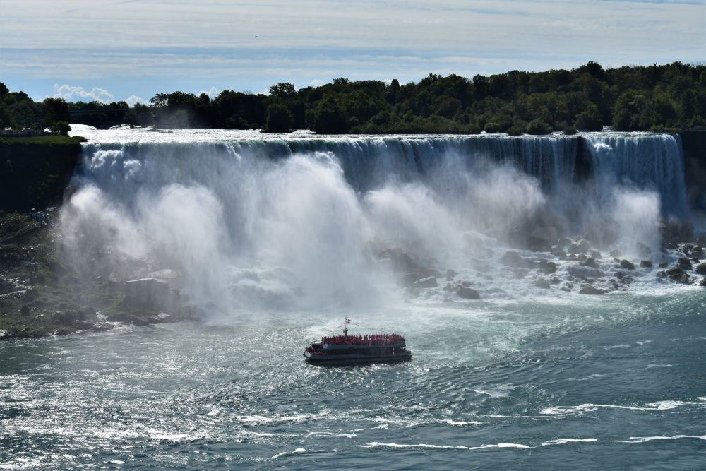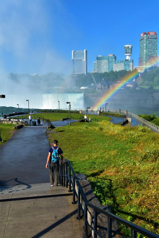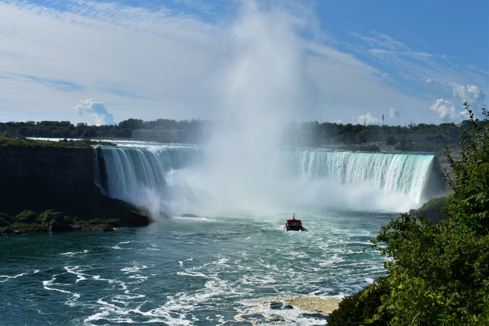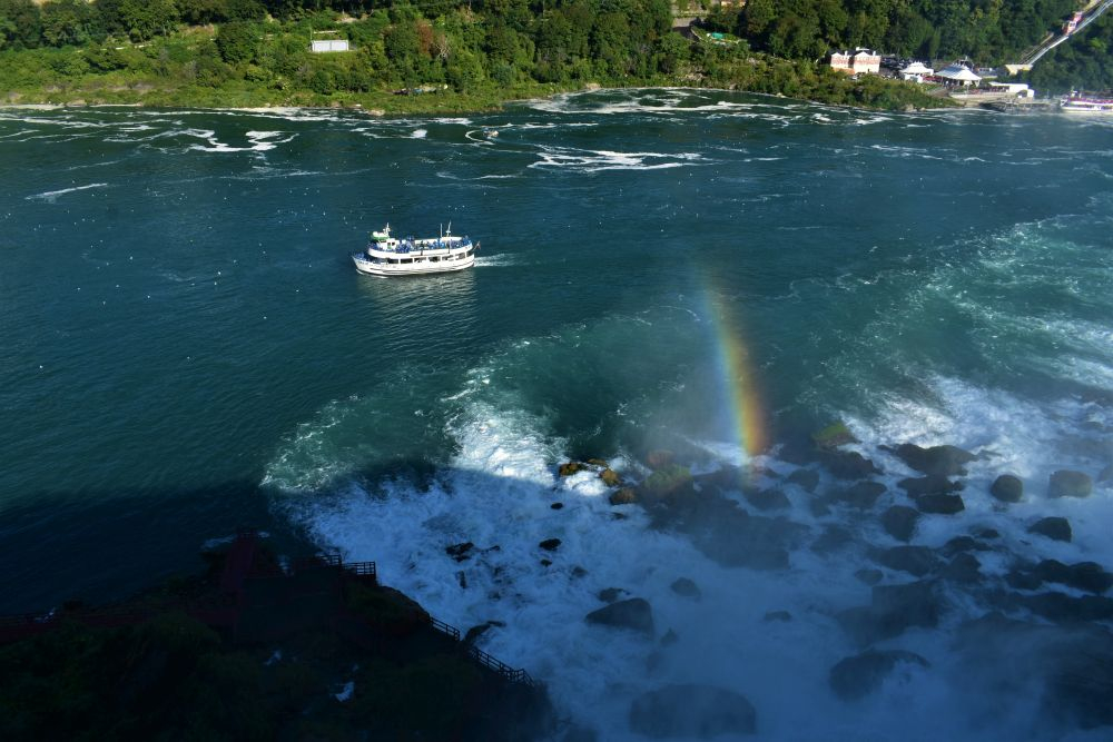 Die Wasserfälle waren durchaus beeindruckend, wir hatten allerdings eine komplett andere Vorstellung davon. In unseren Köpfen waren die Niagarafälle immer irgendwo in der Natur, ohne viel Zivilisation drum herum. Doch wir waren dann sehr überrascht als wir dutzende Hotels und Hochhäuser um die Flüsse herum sahen. Es ist schon alles sehr zubetoniert, von unberührter Natur ist hier definitiv keine Spur mehr. Trotzdem waren die Wasserfälle natürlich gigantisch anzusehen, eine Dusche gab es kostenlos mit dazu 😉