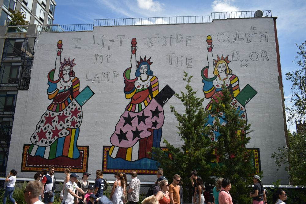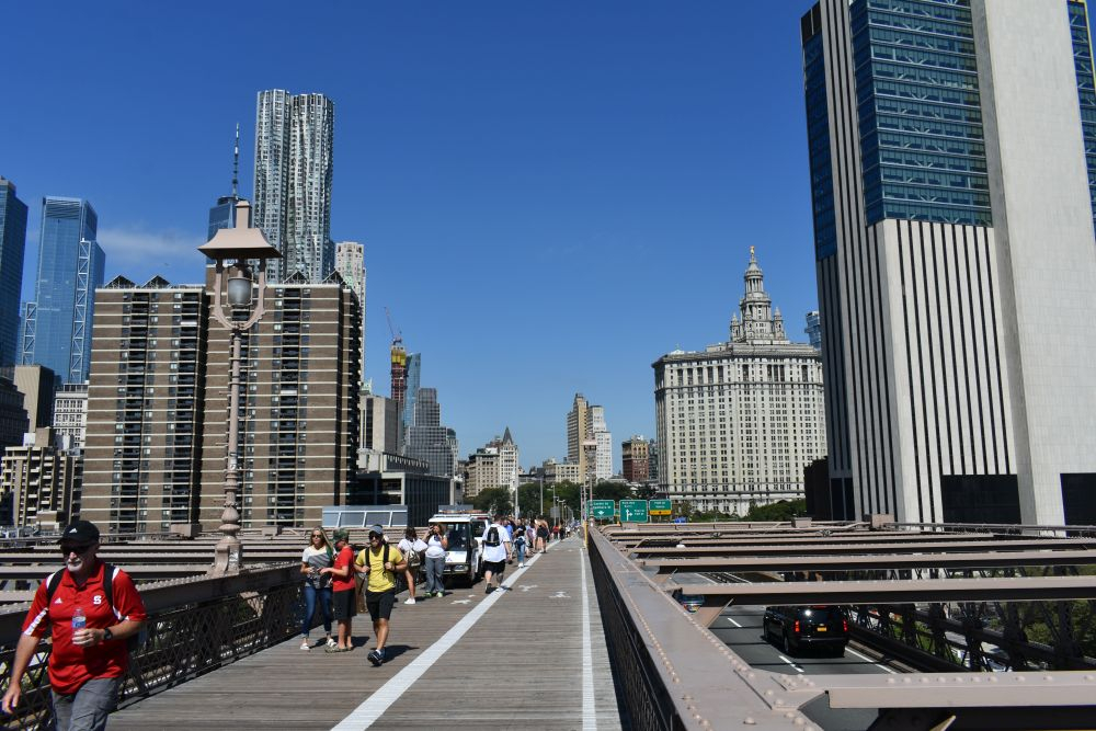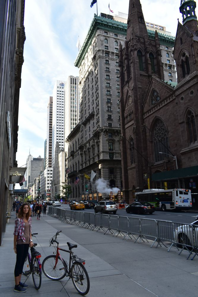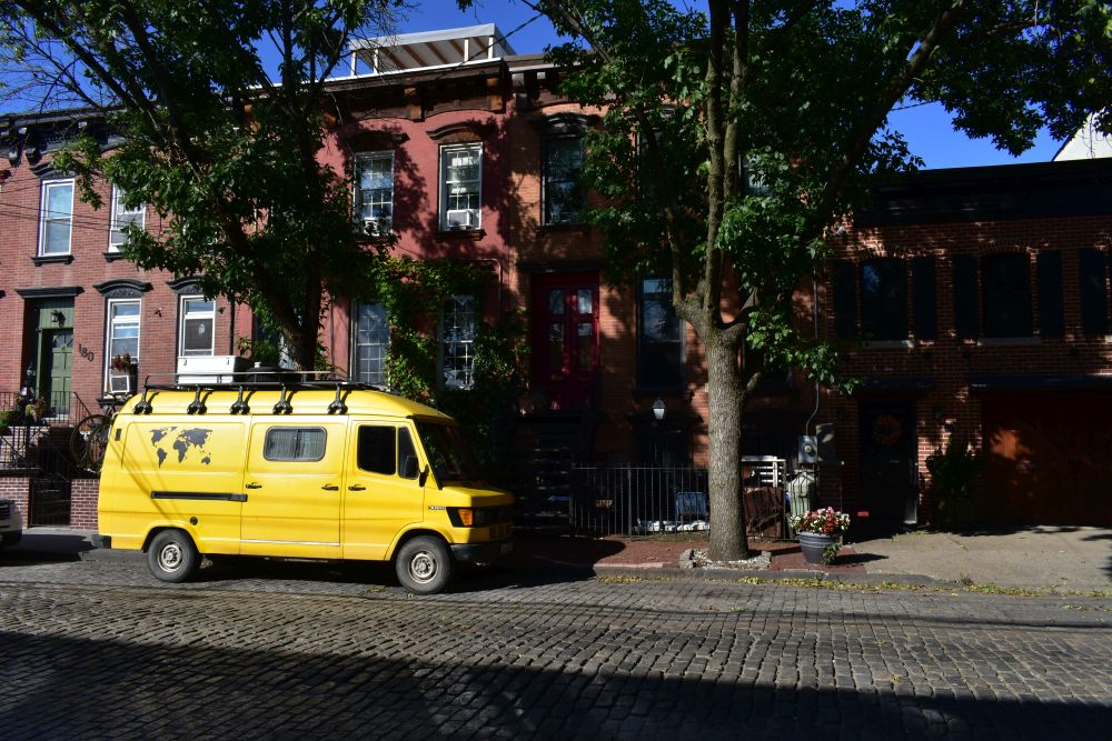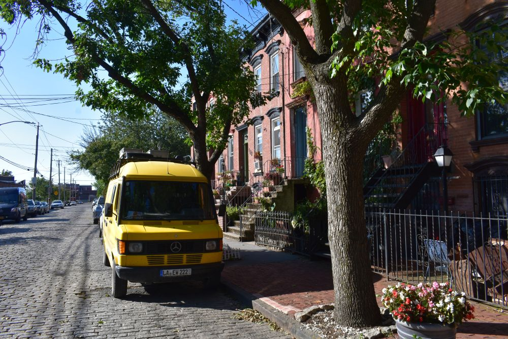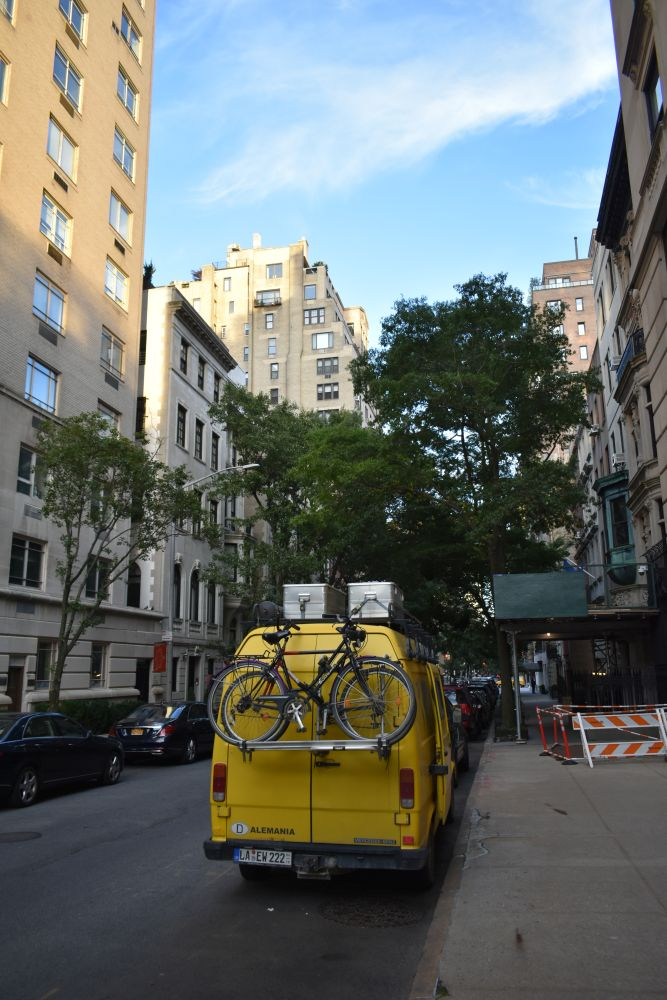 Also stand der Beschluss schnell fest, dass wir mit Erwin nach New York City fahren werden. Vor dem Verkehr graute uns zwar schon mächtig, doch wir haben Mexico City überlebt, dagegen ist NYC ein Spaziergang. Der Weg dorthin war super easy, im Osten der USA ist es relativ flach, sodass auch wir mal mit 90-100 km/h unterwegs sein können. Am späten Nachmittag kamen wir an und waren überrascht wie einfach es ist, durch die Innenstadt zu fahren. Einen passenden Stellplatz hatten wir natürlich schon lange vor Ankunft ausgewählt und navigierten zielstrebig dorthin. Im Red Hook Viertel konnten wir Erwin ruhigen Gewissens stehen lassen und hatten sehr ruhige Nächte. Zudem bot unser Platz einen super Ausgangspunkt zur Besichtigung der Innenstadt. Mit den Fahrrädern waren wir in 15 Minuten mitten in Manhattan.